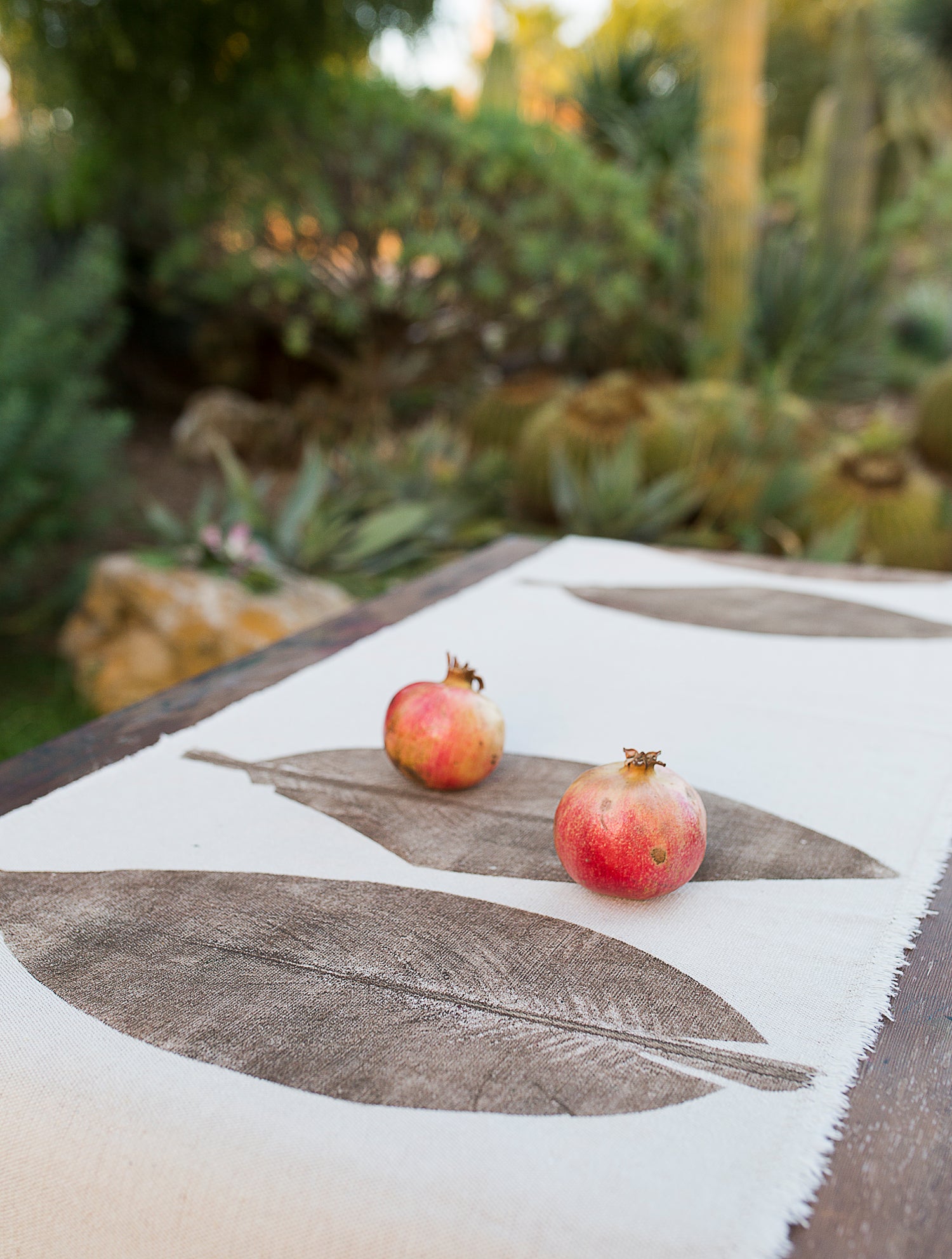 Hand-Printed Alpinia Leaf Tablecloth | Cotton & Jute Blend | fuga in Sicily