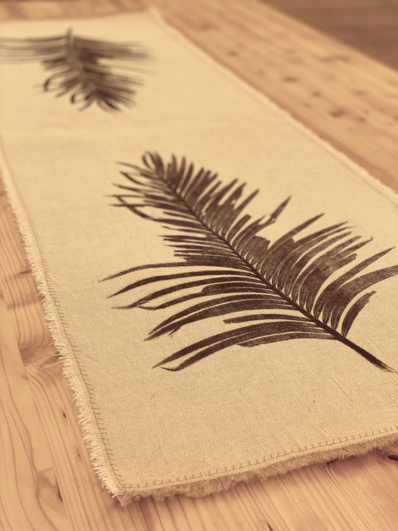 Hand-Printed Cycas Leaf Tablecloth | Cotton & Jute Blend | fuga in Sicily